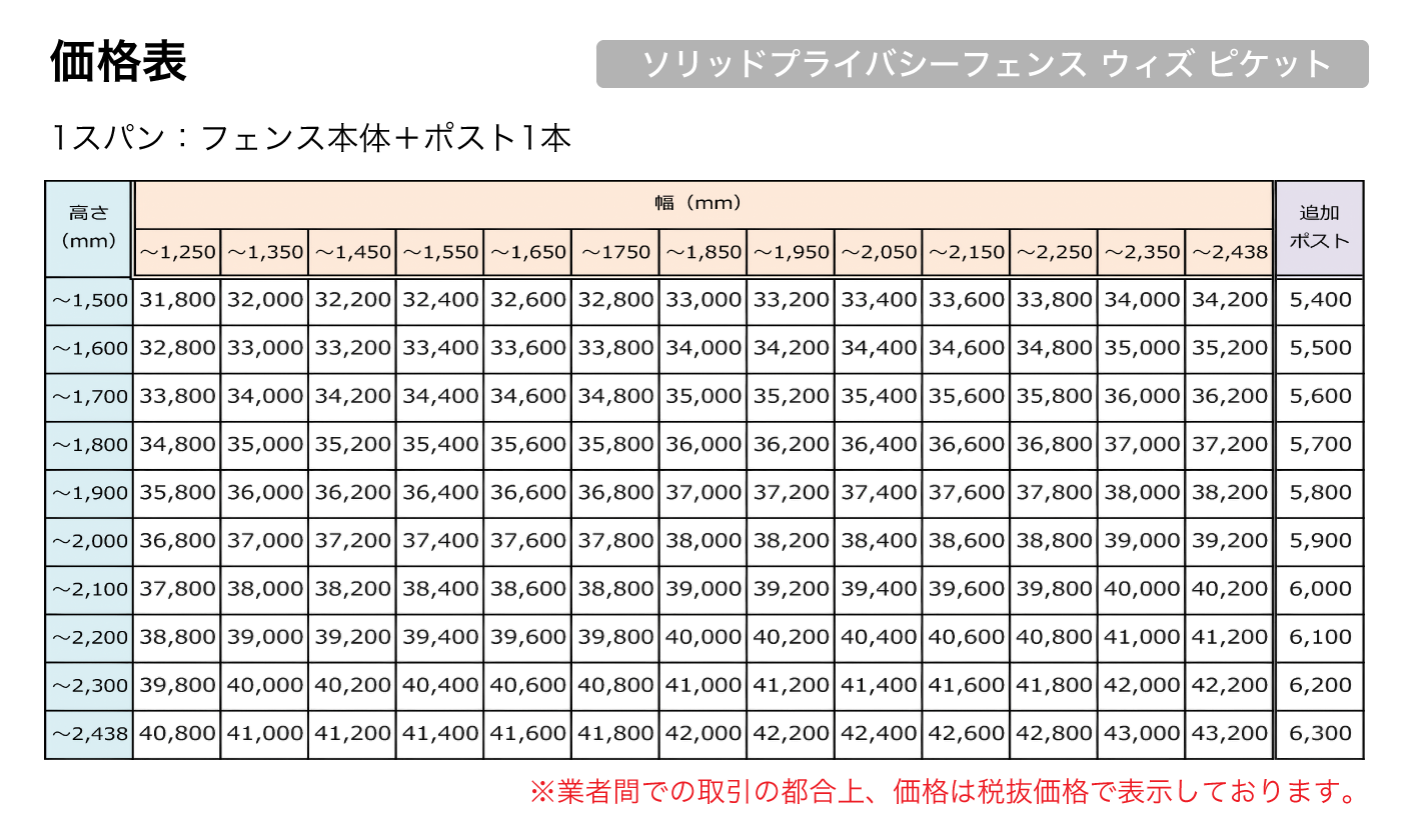 ピケットの高さは500mmが標準となります。ピケットの高さを変更することも可能です。追加料金あり